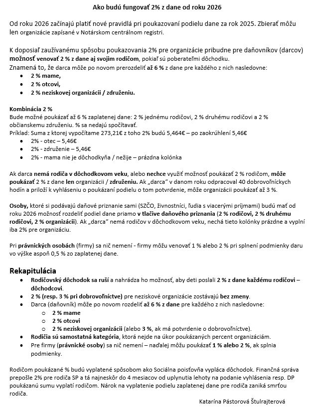 V tomto roku (2026) môžete poslať svoje 2% z dane